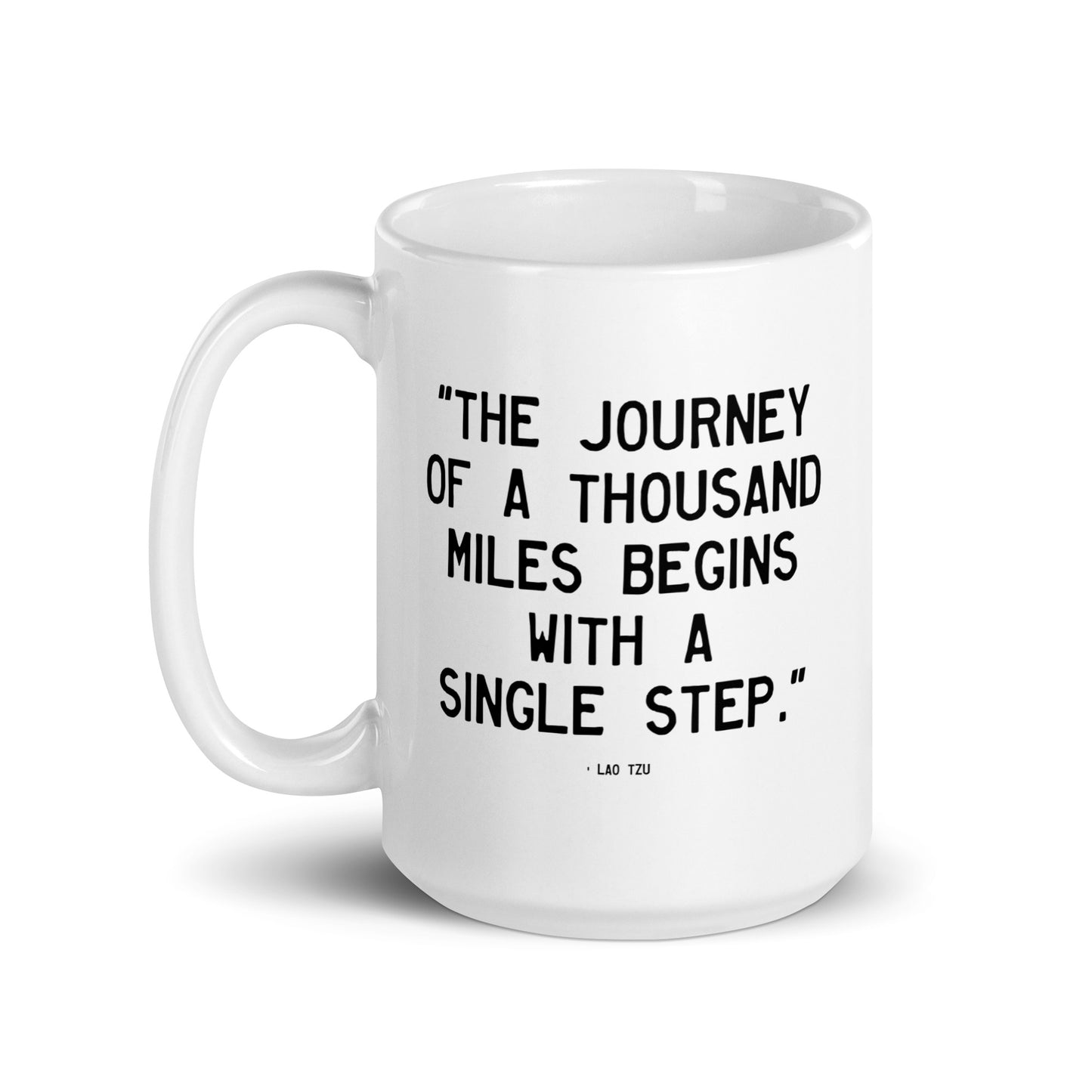 Walking Man Journey Begins Quoted Mug - White Glossy Mug
