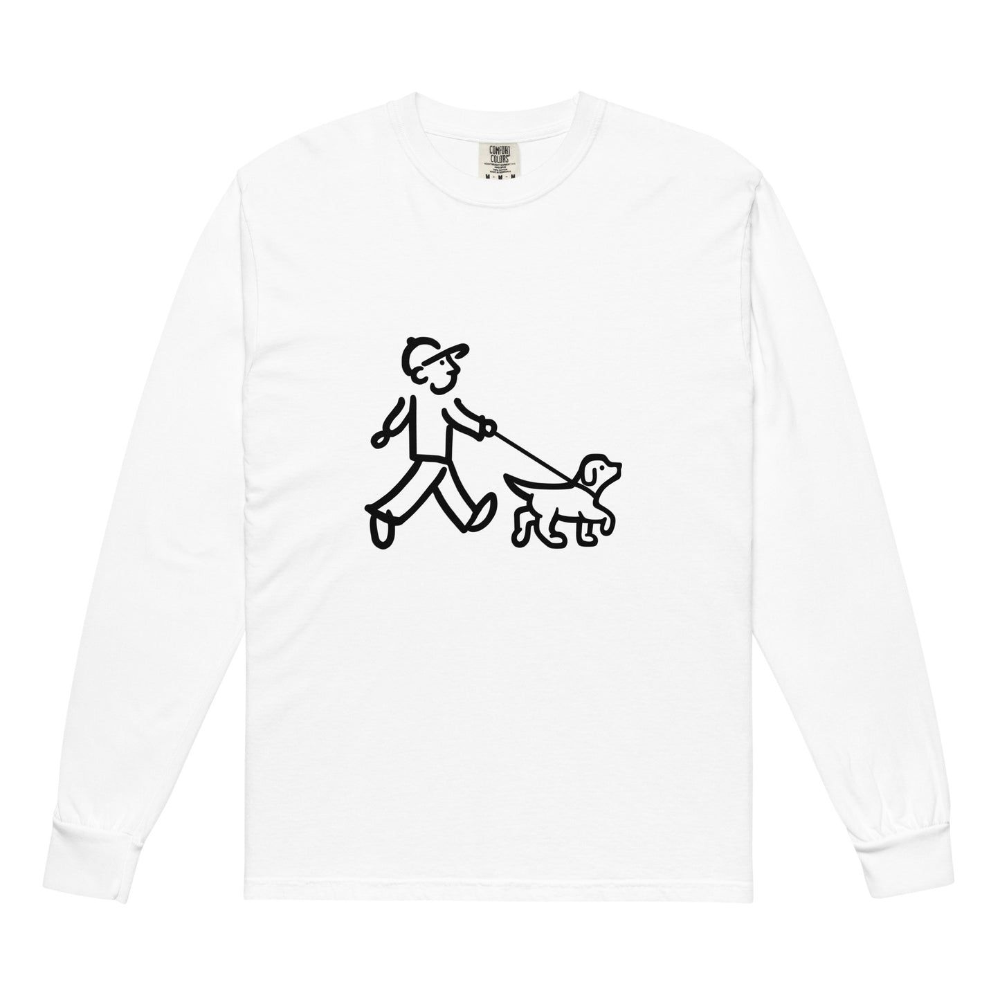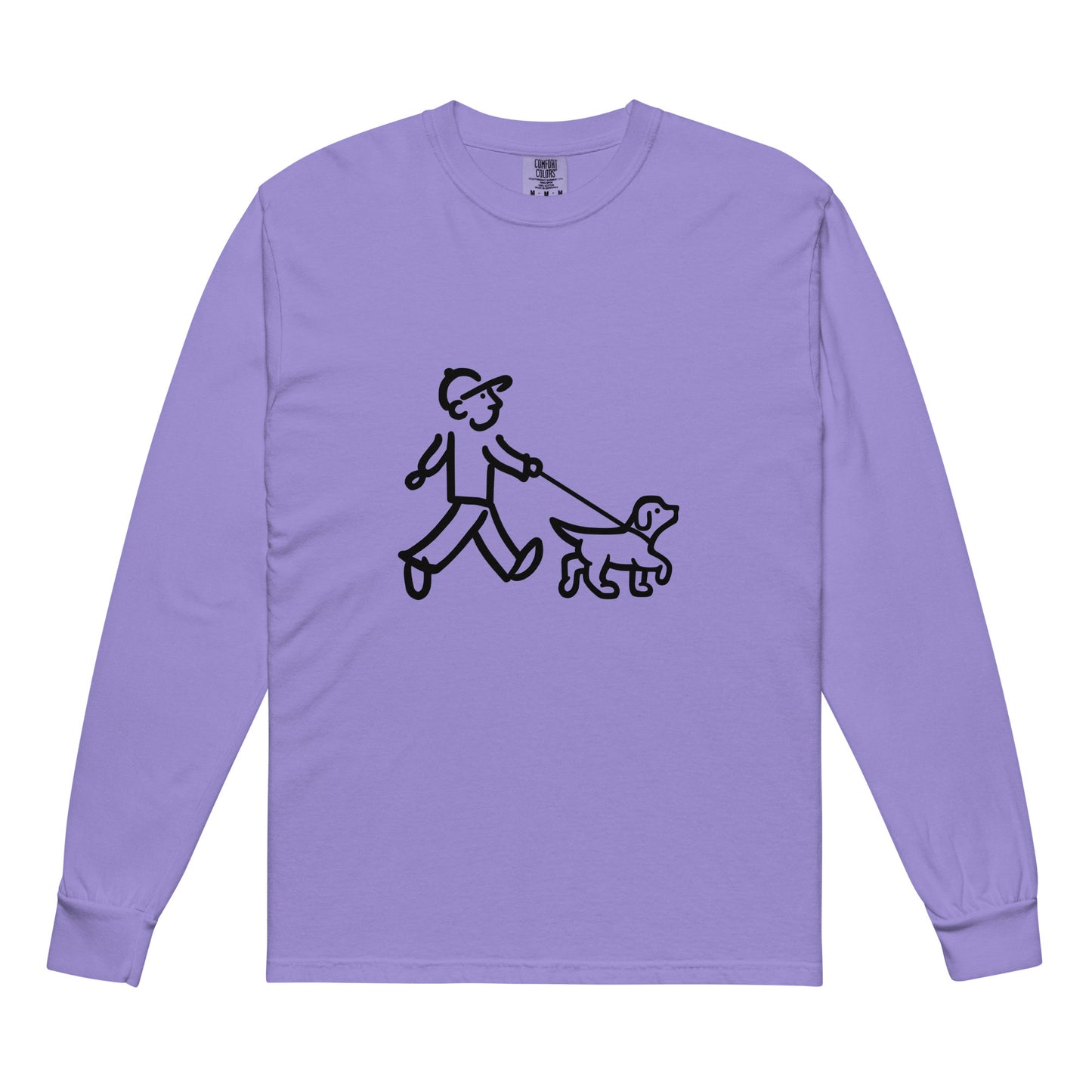 Walking Man walks his Dog with Leash Black - Garment-Dyed Heavyweight Long-Sleeve T-Shirt